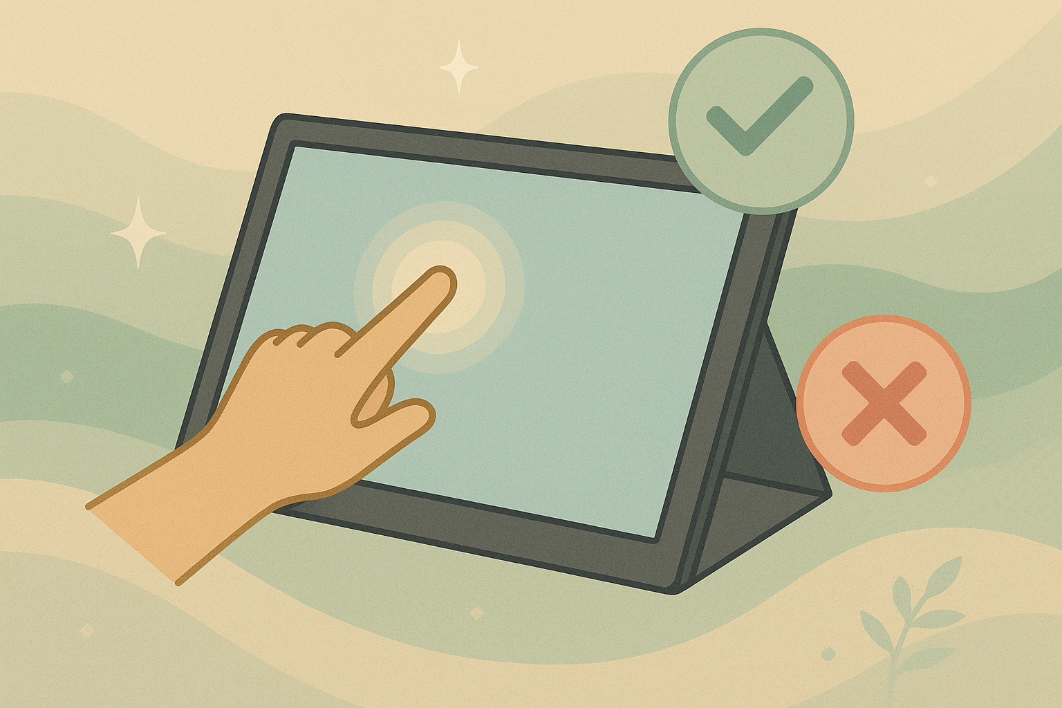 - OSの対応:Windowsは相性を取りやすい傾向。macOS・iPadOSは外部タッチの前提が薄い案内が多い。Androidは端末によって挙動が異なるため、メーカーの互換情報を要確認。