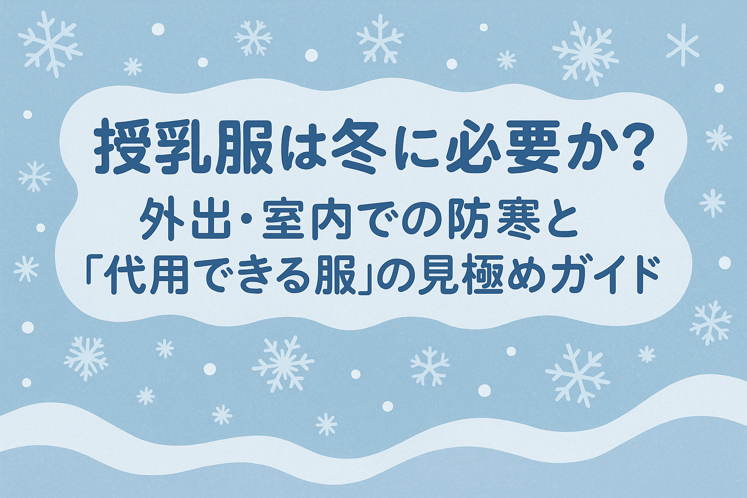 冬の授乳は「防寒」と「授乳しやすさ」の両立がポイントです。授乳服は必須ではありませんが、外出や夜間授乳が多い方にとってはあると便利です。一方で、前開きシャツやカーディガン、二枚重ねの工夫など、普段の服で代用できることも多くあります。