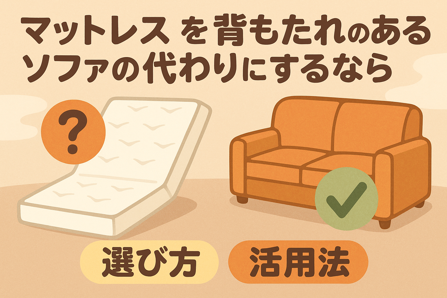 最後に:「マットレスを背もたれのあるソファの代わり」にするコツは、高さ×背もたれ×固定×通気の4点セット。今日そろう小物から始めて、座り心地を少しずつ更新していきましょう。